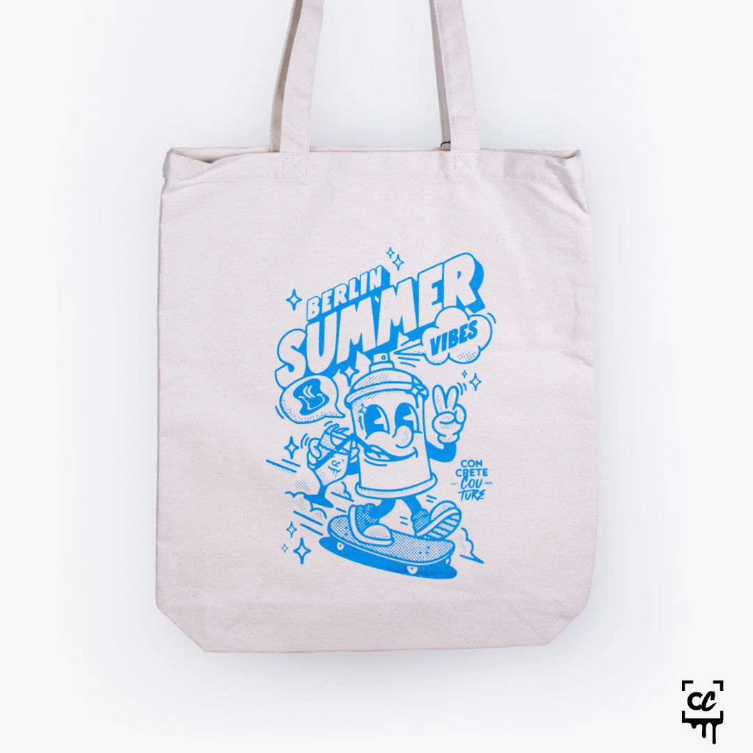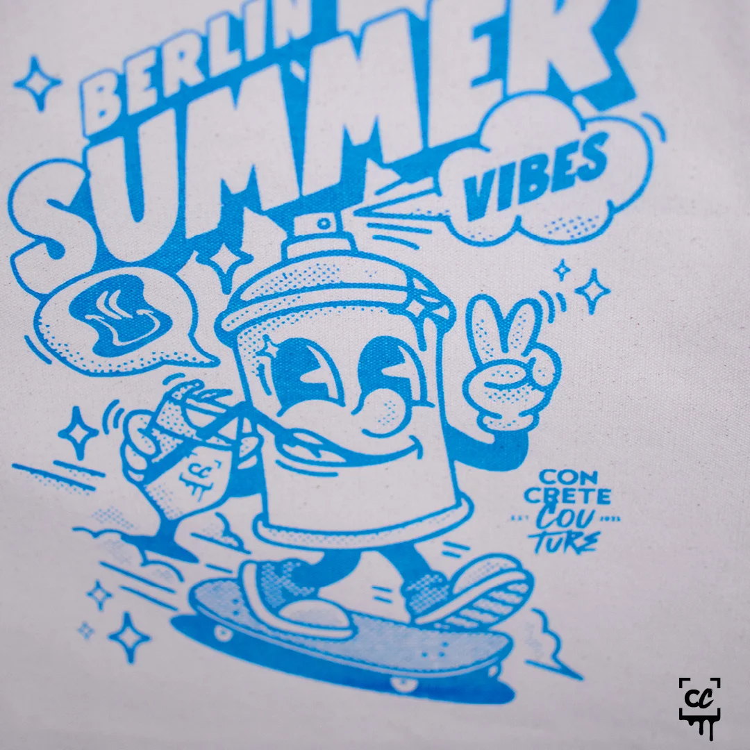 Nicht nur für den Sommer gemacht: Unsere »Berlin Summer Vibes« Shopping Bag bringt den Spirit auch in Herbst und Winter – egal ob voller Einkäufe, Platten oder Sprühdosen. Robust, stylish und mit dem sommerlichen Motiv veredelt, ist sie dein treuer Begleiter durch den urbanen Alltag. Sonne im Herzen, Cans unterm Arm.